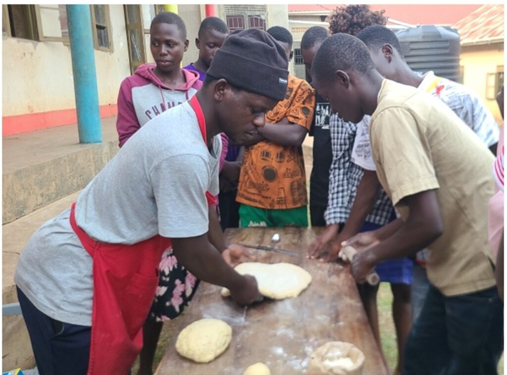 As part of vocational skills development, participants were trained in baking practical products such as half cakes and doughnuts (daddies). This session equipped them with hands-on skills that can be used for income generation and self-employment.
